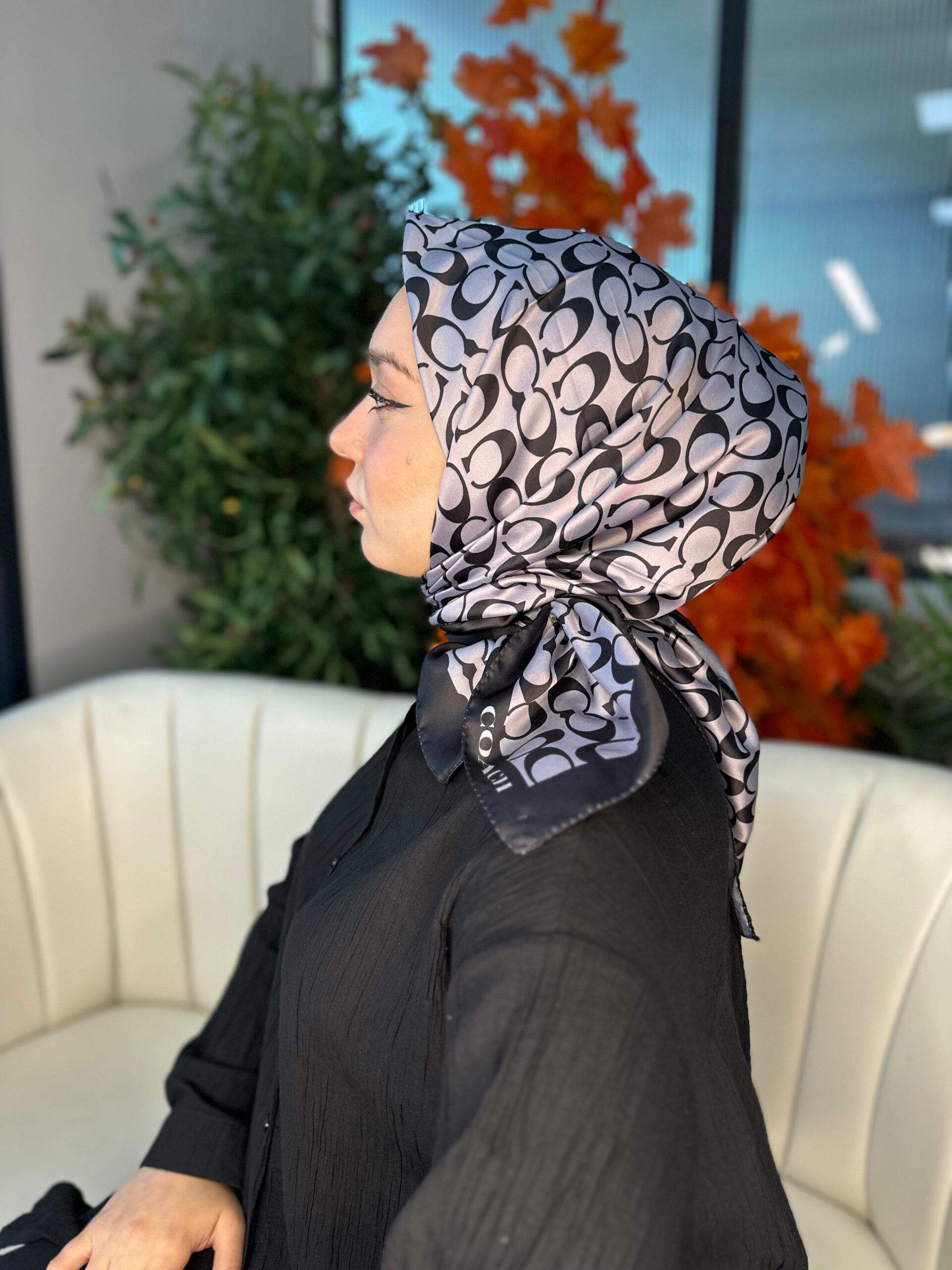 Coach Desenli Twill İpek Eşarp – %100 Orijinal | 90×90 cm