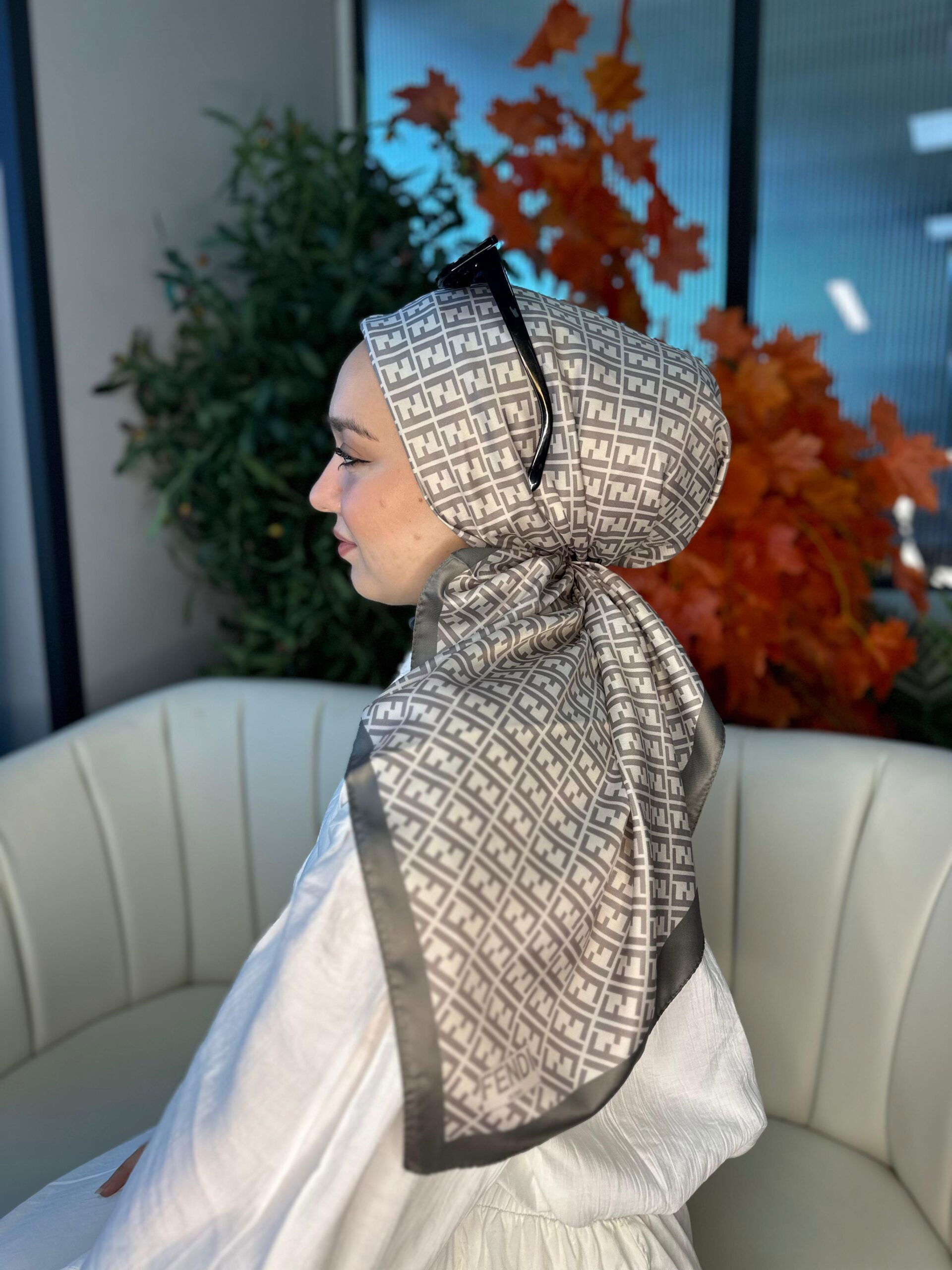 Fendi desen vual ipek eşarp, tüy kadar hafif ve nefes alan yapısıyla gün boyu serin ve konforlu kullanım sunar. Yarı saydam, akışkan dokusu kolay şekil alır; monogram/jeometrik esintili deseni ise kombine anında “designer” bir vurgu kazandırır. Şehir stilinde ceket–gömlekle sofistike, davetlerde sade elbiseyle çabasız şık görünür. Dört mevsime uygundur. Uzun ömür için nazik elde yıkama ya da kuru temizleme önerilir; sıkmadan, düz zeminde kurutun.
