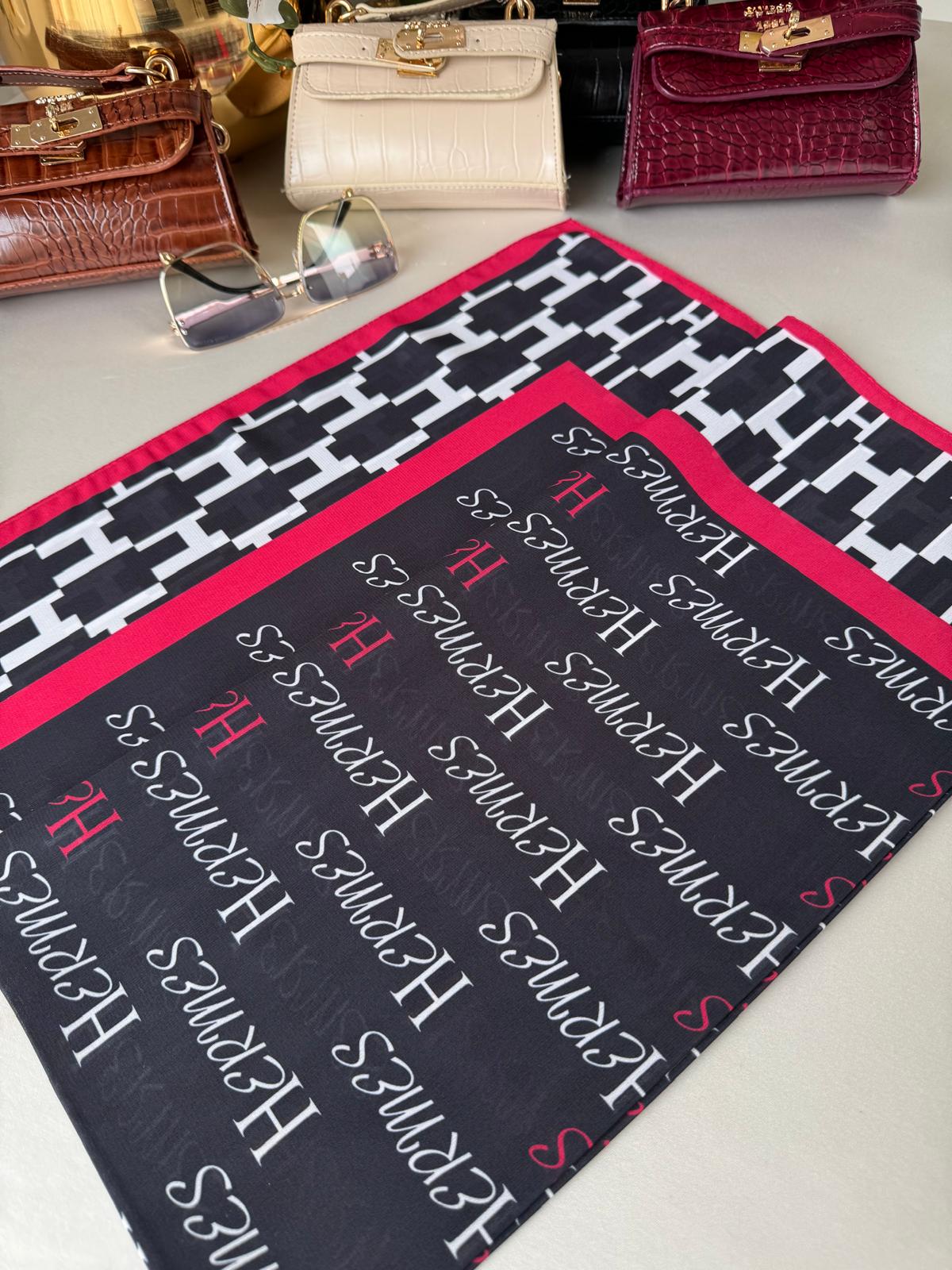 Hermes Saten İpek Eşarp 44123 – Siyah/Fuşya