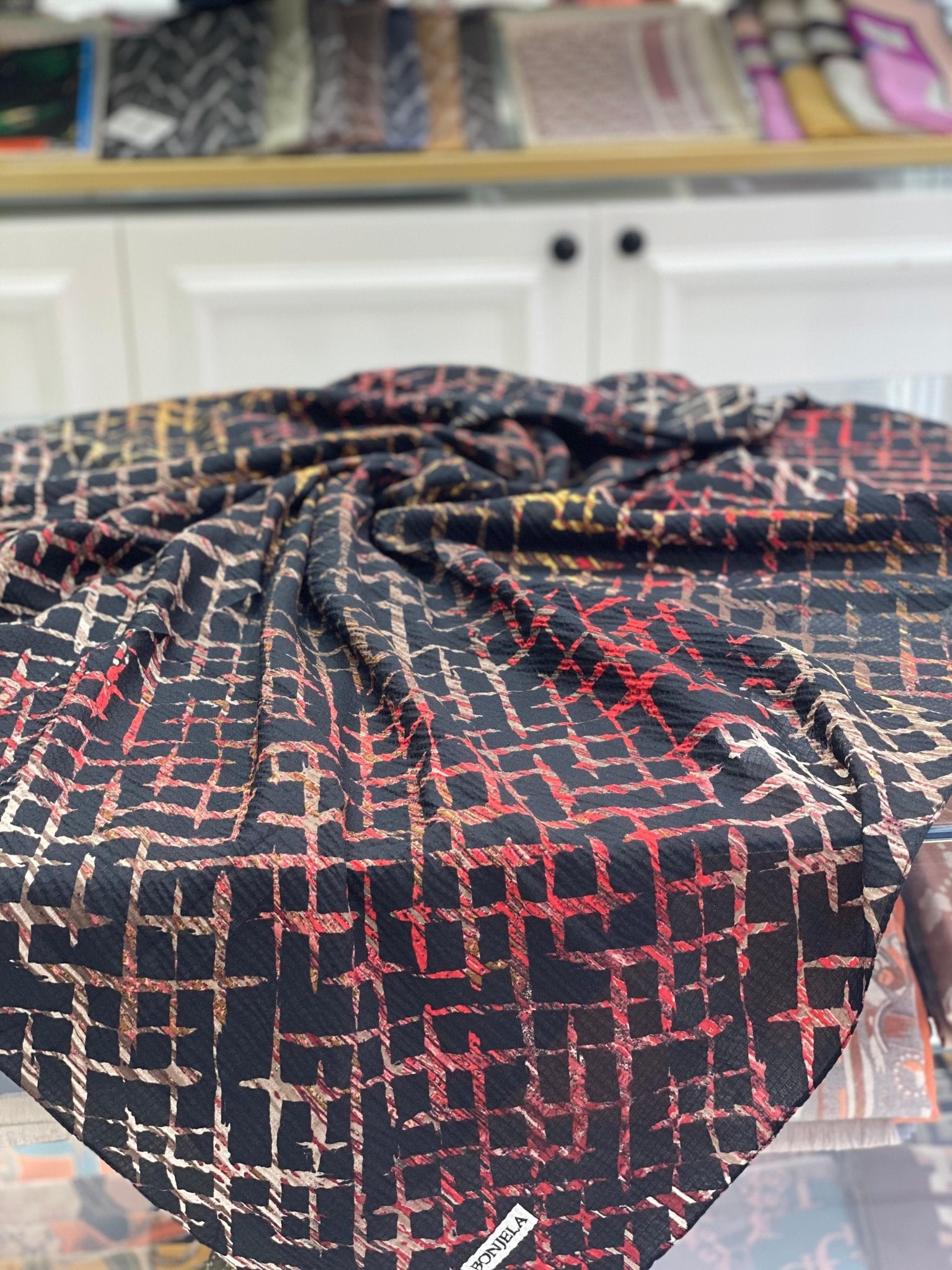 Minimal Desen Mio Caz Eşarp – Siyah / Bordo