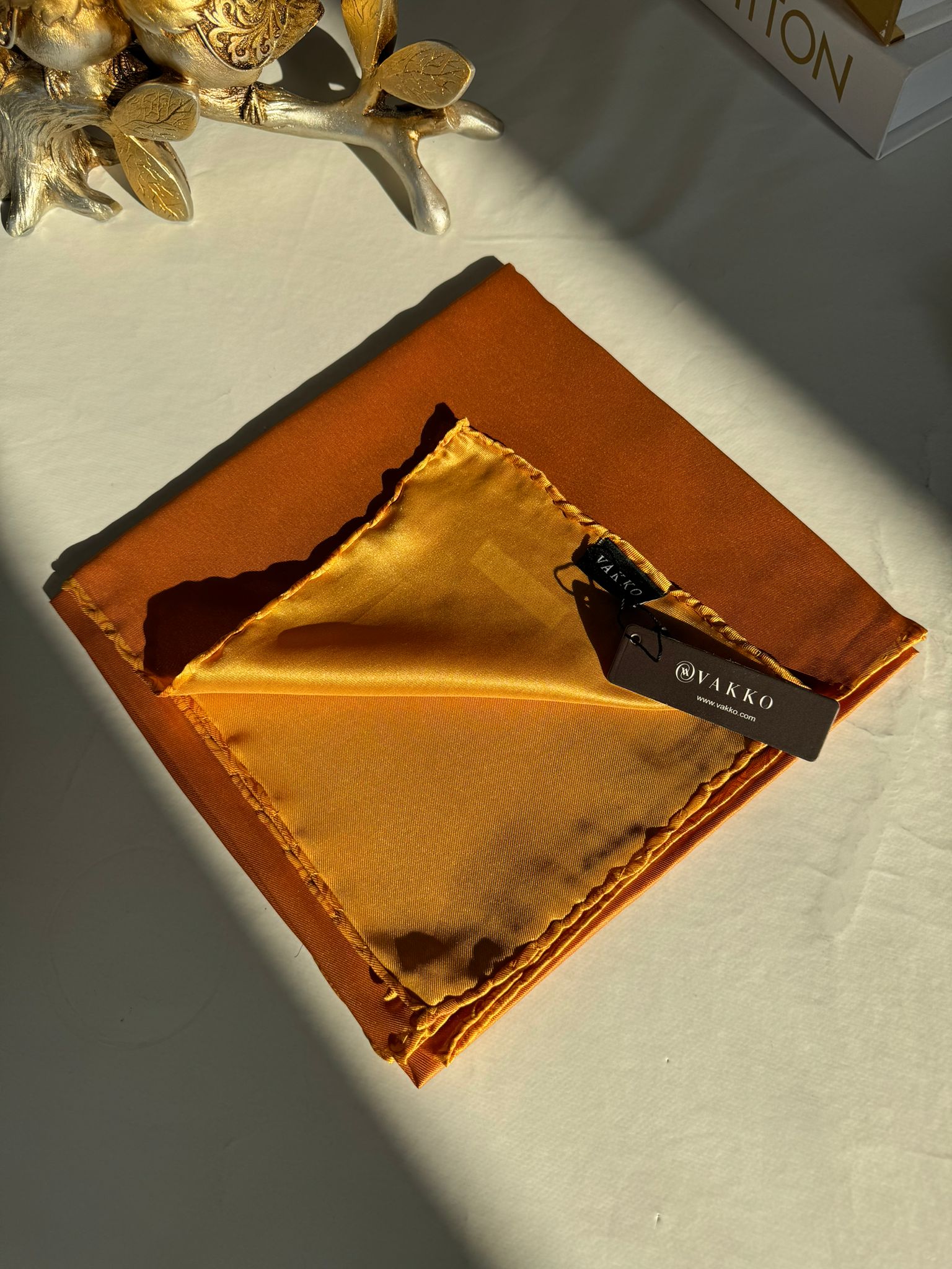 Vakko Çift Taraflı 12 mm %100 İpek Eşarp 10044 – Kiremit/Bej